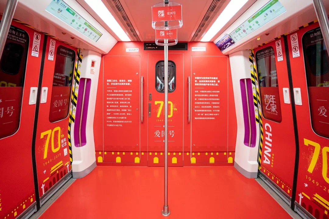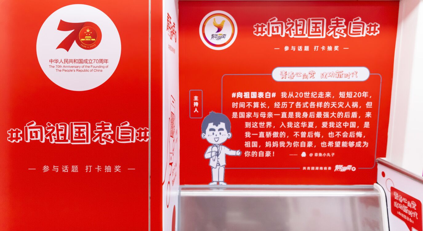 9月24日,慶祝新中國成立70周年“青年湖南”號地鐵專列在長沙地鐵正式首發(fā)!扒嗄旰稀碧枌A型ㄟ^湖南共青團卡通形象“小雷”描繪出新中國成立以來不同時期投身祖國建設發(fā)展的青年形象。全車充滿卡通、時尚的年輕元素,#向祖國表白##愛上湖南#等話題抽獎活動吸引了大量青年駐足拍照互動。